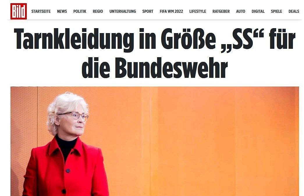 Skandál v německé armádě. Armáda dostala uniformu se symboly SS Bild píše, že zkratka, která je asociována s názvem ozbrojených jednotek nacistického Německa, měla označovat velikost S-Short. Místo toho, aby německá ministryně Lambrechtová vyřešila „nedorozumění“, přeložila odpovědnost na samotné vojáky a navrhla, aby odstřihli výrazné nálepky. Německé úřady zaplatily 2,3 miliardy eur za uniformy, helmy a spací pytle. 313 000 vojáků nosilo uniformy s nacistickými symboly.