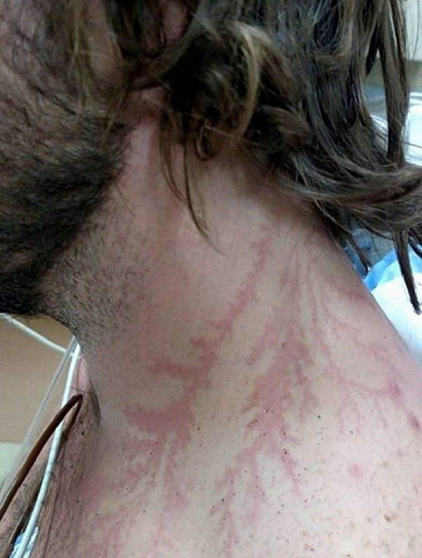 Lidé, kteří přežili zásah bleskem, mají na kůži neobvyklé vzory. Říká se jim "Lichtenbergovy obrazce." Předpokládá se, že tyto jizvy jsou způsobeny prasklými cévami...Děsivé... Krásné...