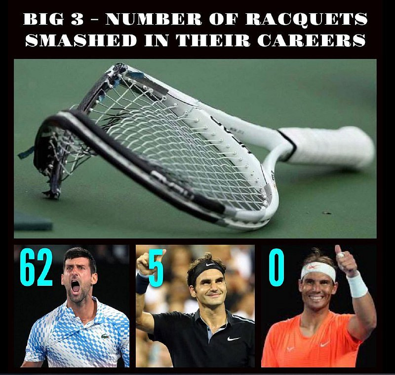 🎾Počet rozflákaných raket velké tenisové trojky za jejich kariéru