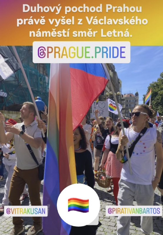 🇨🇿🏳️🌈Prague Pride dorazil na Letnou. V duhovém průvodu šly desetitisíce lidí.Praze se koná další ročník Prague Pride Parade. Duhový průvod vyšel po poledni z Václavského náměstí, krátce po 14:00 dorazili první účastníci na Letenské pláně. Trasu zaplnily vlajky i transparenty na podporu LGBT komunity. Akce se účastní také zástupci vlády. V průvodu šlo podle policie zhruba stejně lidí jako loni, kdy jich bylo až 60000. Na akci dohlíží také členové antikonfliktního týmu pro případ možných střetů s odpůrci, situaci monitoruje i vrtulník. I přes vysoké teploty proudí na Letenské pláně davy lidí. Na místě dostávají nápoje zdarma. Zhruba dvě desítky odpůrců Prague Pride se sešli u sochy svatého Václava. Měli transparenty s hesly „Pride. Láska není pýcha“, „Ježíš je láska. Chce Ti pomoct“ nebo „Česko není Sodoma“ a dohadovali se s účastníky průvodu.