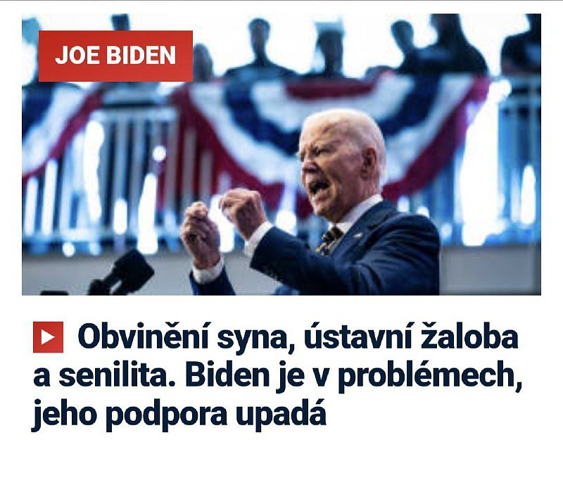 🇺🇸Americký prezident Joe Biden čelí v USA vlně kritiky, a to hned kvůli třem problémům. Předně soud obvinil jeho syna Huntera, republikáni proti šéfovi Bílého domu rozjeli proces impeachmentu a do toho Američané stále pochybují, jestli má Biden psychickou kondici, aby dokázal post prezidenta obhájit. Napsala o tom americká CNN. Prezidentské volby v USA jsou na programu příští podzim, primárky, ve kterých se vybere hlavní kandidát z řad republikánů a demokratů, začnou už na začátku roku. Hlavního demokratického favorita a současného prezidenta Joea Bidena ale sužují mnohé problémy, píše CNN.