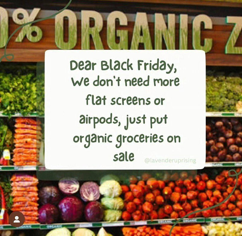 Milý černý pátek..Nepotřebujeme další ploché obrazovky nebo airpody... stačí dát do prodeje organické potraviny.Zlomil jsi nás...Od jednoho dne po celý měsíc!!Pak černý pátek...Není to smůla?🥴
