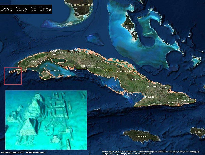 Ponořené město u pobřeží Kuby„Starověké pyramidy u pobřeží KUBY... bylo by načase nechat přepsat historii, vzhledem k tomu, že došlo k celosvětovému pobouření... Dnes už o tom ale nemluvíme...!!!Počin badatelů Zelitského a Weinzweiga vzbudil zájem mezinárodní vědecké komunity v roce 2001. Byly popsány struktury ve tvaru pyramid, neuvěřitelně zarovnané, které mohly pocházet až před 50 tisíci lety“..!!V roce 2001 objevili vědci mimořádné naleziště hluboko v Atlantském oceánu, nedaleko pobřeží Kuby...Během průzkumné a průzkumné mise jejich sonarové vybavení zachytilo sérii kamenných staveb, které se nacházely přibližně 650 metrů pod hladinou Atlantského oceánu..!Struktury se zdály zcela podobné pusté „poušti“ mořského dna, vykazovaly symetricky uspořádané kameny, připomínající městskou zástavbu... bulvární tisk a výzkumné ústavy okamžitě explodovaly při zprávě o tomto vzrušujícím podvodním objevu a nazvaly ho „ztraceným městem Atlantida“..Souřadnice:21°46'21,2"N 84°50'12,3"Z