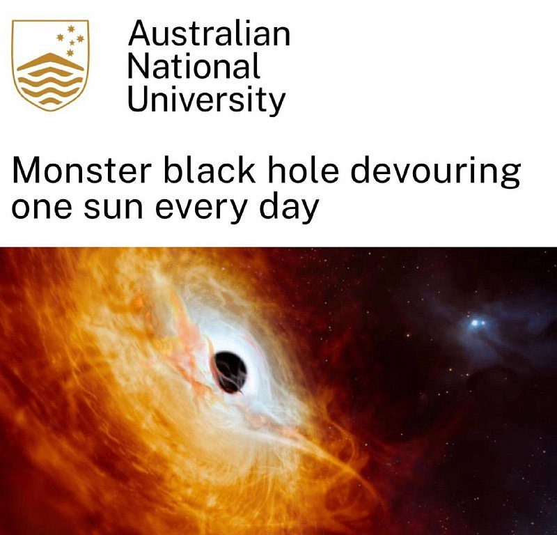 Vědci našli nejrychleji rostoucí černou díru v historii pozorování„Je to také nejjasnější známý objekt ve vesmíru. Je 500 bilionkrát jasnější než naše Slunce,“ uvedl hlavní autor studie, docent z Australské národní univerzity Christian Wolf.Objevený objekt každý den pohltí hmotnost ekvivalentní Slunci. Její vlastní hmotnost převyšuje hmotnost hvězdy asi 17 miliardkrát.