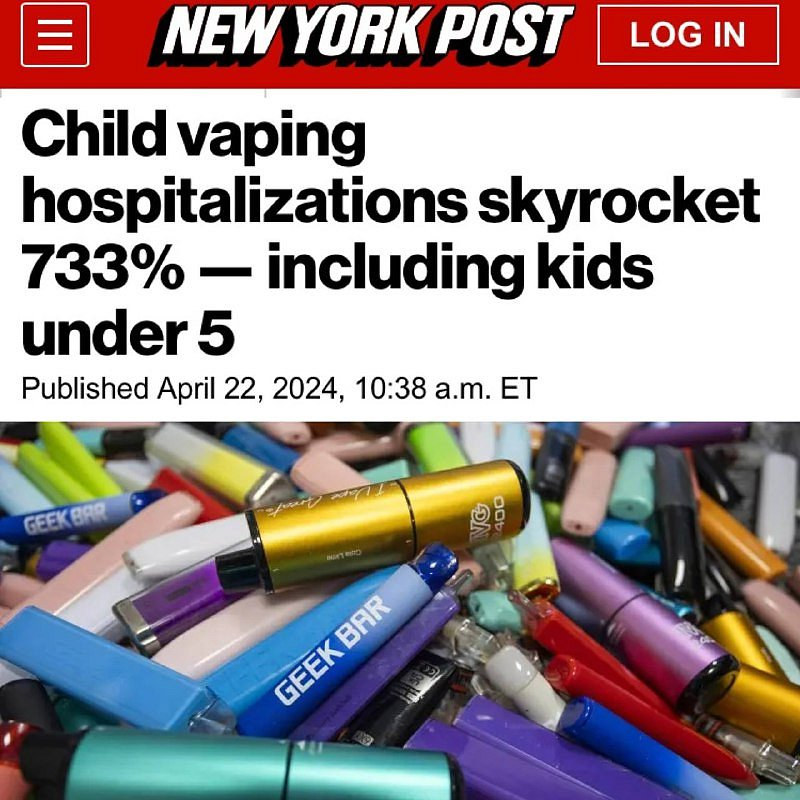❗️Hospitalizace mladých lidí kvůli vapingu se za poslední čtyři roky zvýšila o 733 % – včetně dětí do 5 let. — New York Post.