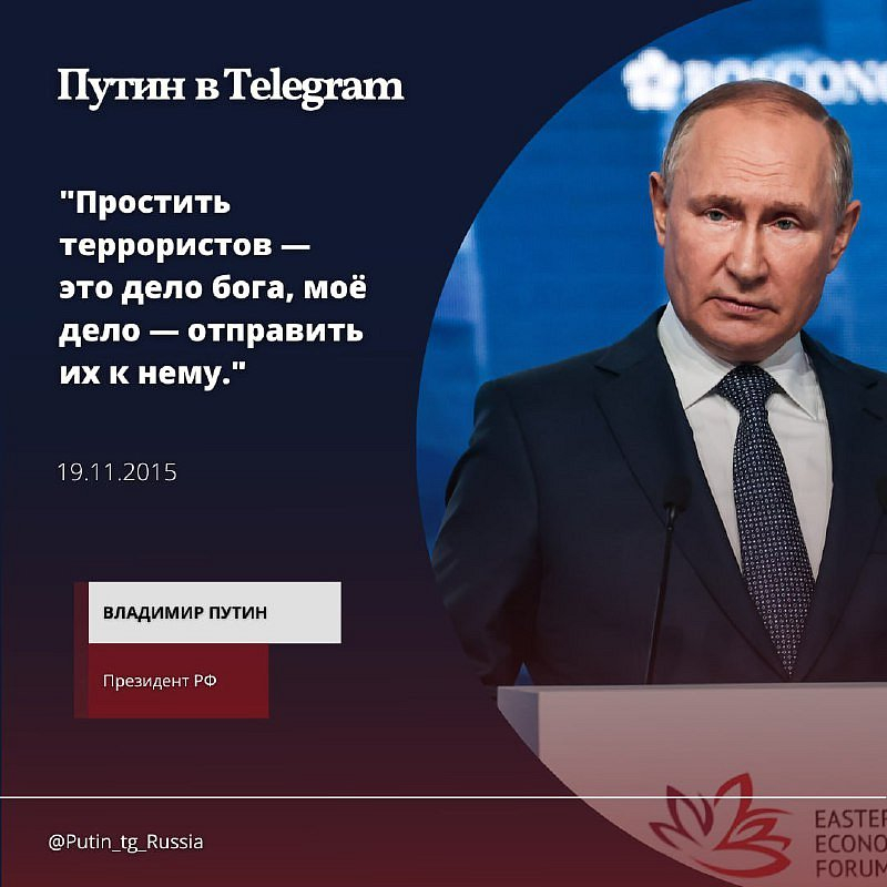 Odpustit teroristům je Boží úkol, mým úkolem je poslat je k němu. V. Putin, 19.11.2015✉ PUTIN na telegramu