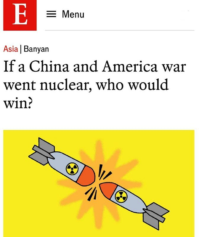 🇺🇸🇨🇳 The Economist: Analytické centrum pro novou americkou bezpečnost ve Spojených státech provedlo simulaci války mezi Čínou a Amerikou. Podle scénáře k válce o Tchaj-wan dojde v roce 2032 a bude mít krátké trvání. 45. den Čína používá taktické jaderné zbraně, aby „přivedla Ameriku k podrobení“. Mezi její cíle patří Guam a atol Kwajalein, které jsou důležité pro americkou vojenskou pozici v Tichomoří, a také úderná skupina amerických letadlových lodí.„Čína má větší šanci stát se vítězem“: Asie je přeplněná americkými zařízeními a námořními prostředky, na které se může zaměřit. A důležité vojenské cíle Číny jsou na jejím území a „útok proti nim taktickými jadernými zbraněmi by vedl k extrémně vysokému riziku všeobecné jaderné války“.No, mnoho vojenských zařízení mimo území státu není jen aktivem, ale také stálou hrozbou a Amerika to chápe. Ale k závěru o „vítězi“ jsou stále velké otázky - může vůbec existovat v jaderné válce.
