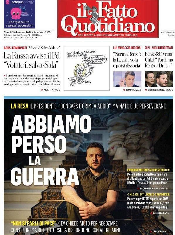 "Prohráli jsme válku"Titulek italského il Fatto Quotidiano shrnuje Zelenského vládu.