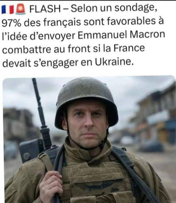 ❗️🇫🇷Satirické zprávy ve Francii:Podle průzkumu veřejného mínění je 97 % Francouzů pro vyslání Emmanuela Macrona na frontu, pokud se Francie připojí k nepřátelským akcím na Ukrajině. 🤣🤣