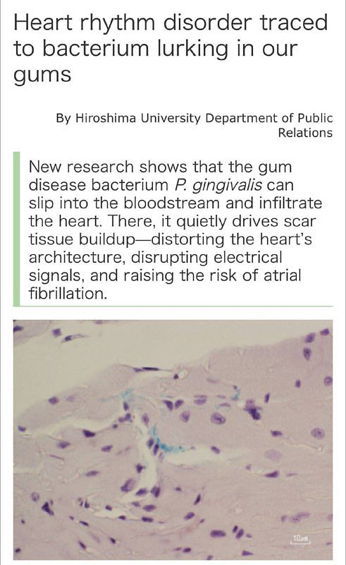 Nečisté zuby vedou k infarktu, tvrdí vědciBakterie z dásní se mohou dostat do krevního oběhu, způsobit zánět a spustit fibrózu srdečního svalu.Nejlepší ochranou proti bakteriím je pravidelné čištění A včasný léčba .