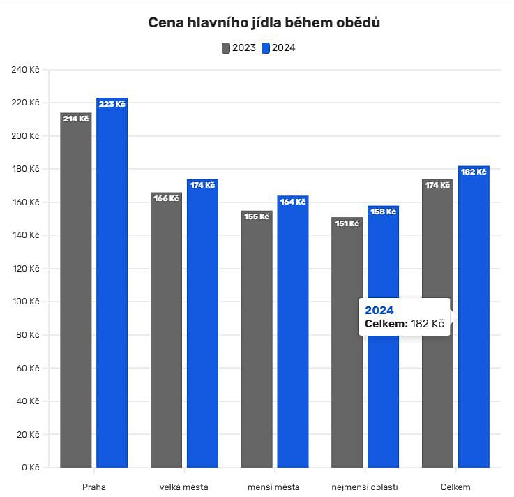 🇨🇿 ČR | Obědy v Česku opět zdražují. A tak na sobě musí Češi šetřit.Průměrná cena hlavního jídla při obědě v hospodě či restauraci letos vyšplhala na 189 korun, meziročně je o čtyři procenta vyšší. V Praze je v průměru za 220 korun, vyplývá z analýzy poskytovatele pokladních systémů Dotykačka. Češi přitom během pracovního týdne omezili chození na obědy a šetří na pití či polévce. Poslední data jsou z letošního dubna.🍀 Sdílejte s přáteli: @cz24news