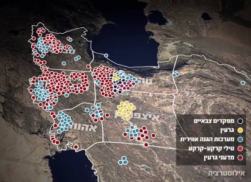 — 🇮🇱/🇮🇷 NOVINKA: Izraelské obranné síly (IDF) zveřejnily infografiku s údajně dosud zacílenými lokalitami v ÍránuČerná: Vojenští veliteléŽlutá: Jaderná místaModrá: Protivzdušná obranaČervená: Odpalovací zařízení raketFialová: Jaderní vědciNa základě této infografiky, za předpokladu, že je správná a nepřehnaná (pochybná), má Izrael pravděpodobně vzdušnou převahu nad severozápadním Íránem, což je zhruba 20 % celkového území Íránu.Zdá se, že střední, jižní a východní Írán jsou prozatím stále mimo dosah cílů IDF.(Mnoho z „odpalovacích zařízení“ jsou pravděpodobně návnady.)
