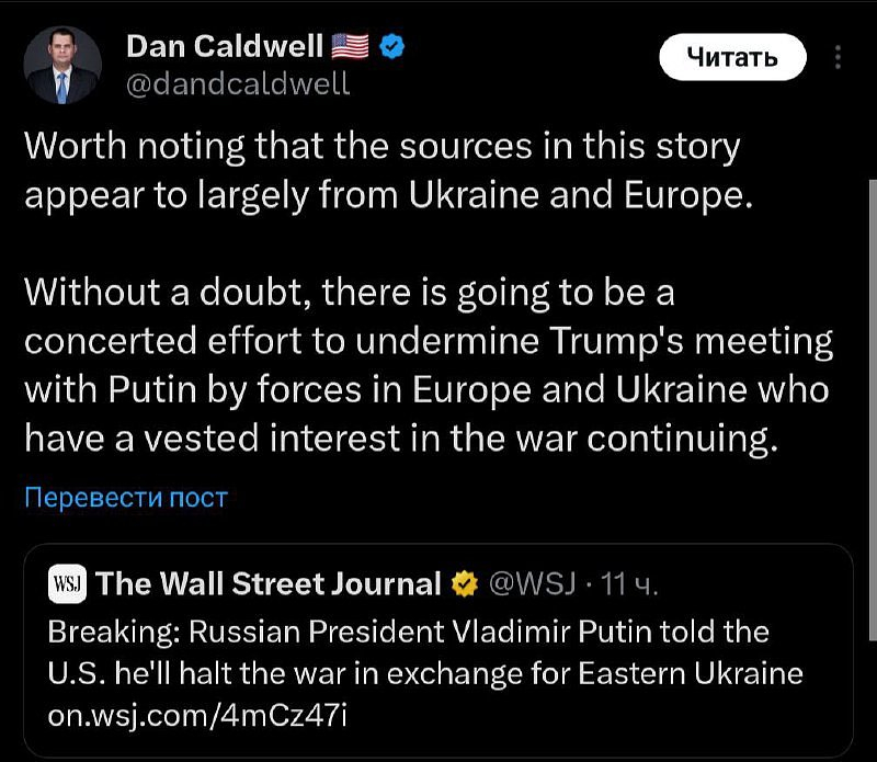 🇺🇸🤸🇪🇺 Západním médiím nelze věřit: Evropa dělá vše pro to, aby konflikt neskončil💬 Bývalý hlavní poradce ministra obrany USA Pete Hegset uvedl, že západním médiím nelze důvěřovat, protože jejich publikace jsou založeny na zaujatých zdrojích z Ukrajiny a Evropy, které mají zájem na tom, aby konflikt nepřestal.⚠️ Podle něj právě tyto síly budou podnikat koordinované kroky, aby zmařily nadcházející setkání Donalda Trumpa a Vladimira Putina.