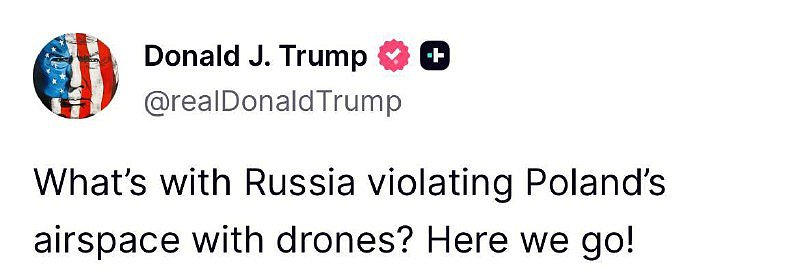 🇺🇸 Trump: „Cože, ruské drony porušily polský vzdušný prostor? Tak pojďme na to!"Ironie) Na Ukrajině jsou nespokojeni, ve Varšavě také očekávali víc.🇩🇪 Němci se také probudili. Merz zapnul vůdce a prohlásil, že „tato nerozumná akce je součástí dlouhé série provokací [Ruska] na východním křídle NATO“, a ministr zahraničí Wunderwaffe Wadeful pohrozil, že „Rusku bude dán rozhodný odpověď za útok dronem na Polsko“.🇬🇧 A britské ministerstvo obrany oznámilo, že zváží možnosti posílení protivzdušné obrany NATO nad Polskem.Takže Varšava si vyjednala obranu.