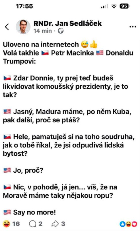 ☠️ „Žádné oběti na naší straně“ — Trumpova dobrodružství ve Venezuele si vyžádala životy 32 KubáncůKuba uvedla, že 32 kubánských vojáků a policistů bylo zabito během americké agrese vůči Venezuele, podle prohlášení kubánské vlády. Byli na misi na žádost venezuelských úřadů.🇨🇺 Havana oznámila dva dny národního smutku a uvedla, že důstojníci „plnili svou povinnost s důstojností a hrdinstvím“ a byli zabiti „po silném odporu v přímém boji proti útočníkům nebo v důsledku bombových útoků“.💬 „Čest a sláva statečným kubánským bojovníkům, kteří padli při konfrontaci s teroristy v imperiálních uniformách, kteří unesli a nelegálně odvedli z jejich země prezidenta Venezuely a jeho manželku,“ napsal kubánský prezident Miguel Díaz-Canel Bermúdez na X.💥 „Zákon a pořádek“ — Trumpovým stylem.👍