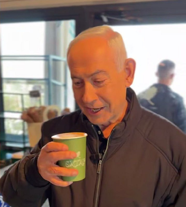Pokus vyvrátit zvěsti o smrti Netanjahua selhal!Uživatelé s údivem zaznamenali, že válečný zločinec drží šálek kávy zvláštním chytačem, jako by to byla želva ninja, je oblečen v teplém kabátě v horkém počasí (20–25 stupňů) a co je nejdůležitější – po polknutí se množství kávy v šálku nesnížilo.