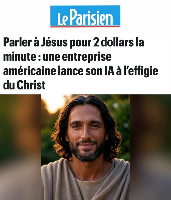 „Hovor s Ježíšem za 2 dolary za minutu“: Ve Spojených státech byl spuštěn umělý inteligence v podobě Krista. „Společnost Just Like Me nabízí videohovo... | Každý den vám exkluzivně přinášíme výběr těch nejdůležitějších zpráv a novinek, které se objevily za posledních 24 hodin na telegramu. Neručíme za pravdivost těchto zpráv a ani neověřujeme zdroje. Berte tedy tyto informace s rezervou.