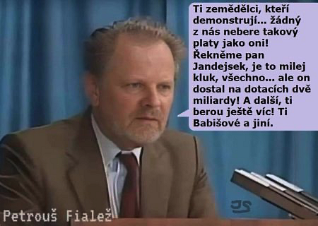- Blyštivý Péťa rovnou označí za kremelské šváby nejen organizátory protestu, ale i všechny účastníky, jejich příbuzné, jejich kamarády a „proruskou sviní“ se podle nejméně oblíbeného premiéra na planetě stane i ten, kdo náhodou projde kolem traktoru na menší vzdálenost než 2 bezpečné metry. Prostě Péťa bude jako vždy vysílat jasné signály.