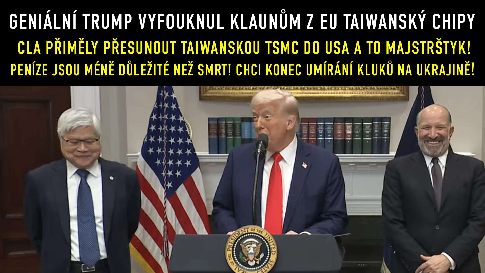 Geniální Trump v kontrastu s imbecily v EU - Konec války na Ukrajině a megabyznys s TSMC a Apple